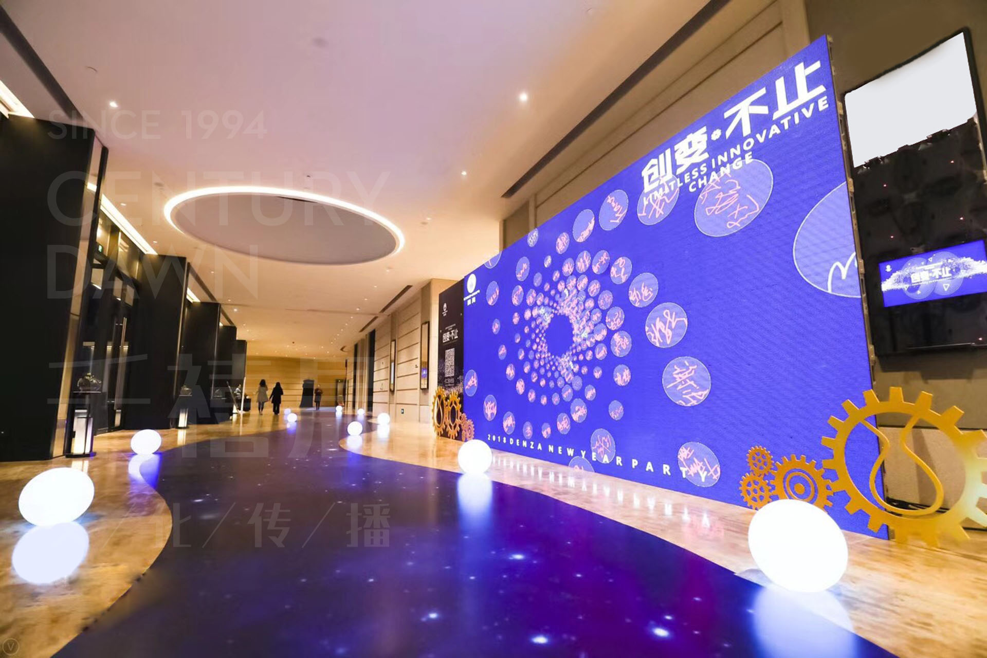 初心,締造夢(mèng)想,不畏將來(lái),懷空懷之心出發(fā);開(kāi)拓,創(chuàng)造未來(lái),志存高遠(yuǎn),攜手不凡的漫途;未來(lái),遠(yuǎn)遠(yuǎn)不止所見(jiàn)!本次以“創(chuàng)變·不止”為主題的2018年會(huì)精彩落幕。千禧晨團(tuán)隊(duì)將企業(yè)產(chǎn)品元素融入場(chǎng)景布置中,入場(chǎng)前的汽車(chē)合影框、彎彎曲曲的星空走道,以及走道旁邊一定數(shù)量的發(fā)光球體,令整個(gè)外場(chǎng)變得高端、唯美,吸引許多賓客拍照打卡。活動(dòng)環(huán)節(jié)更是歡聲不止,掌聲不斷。