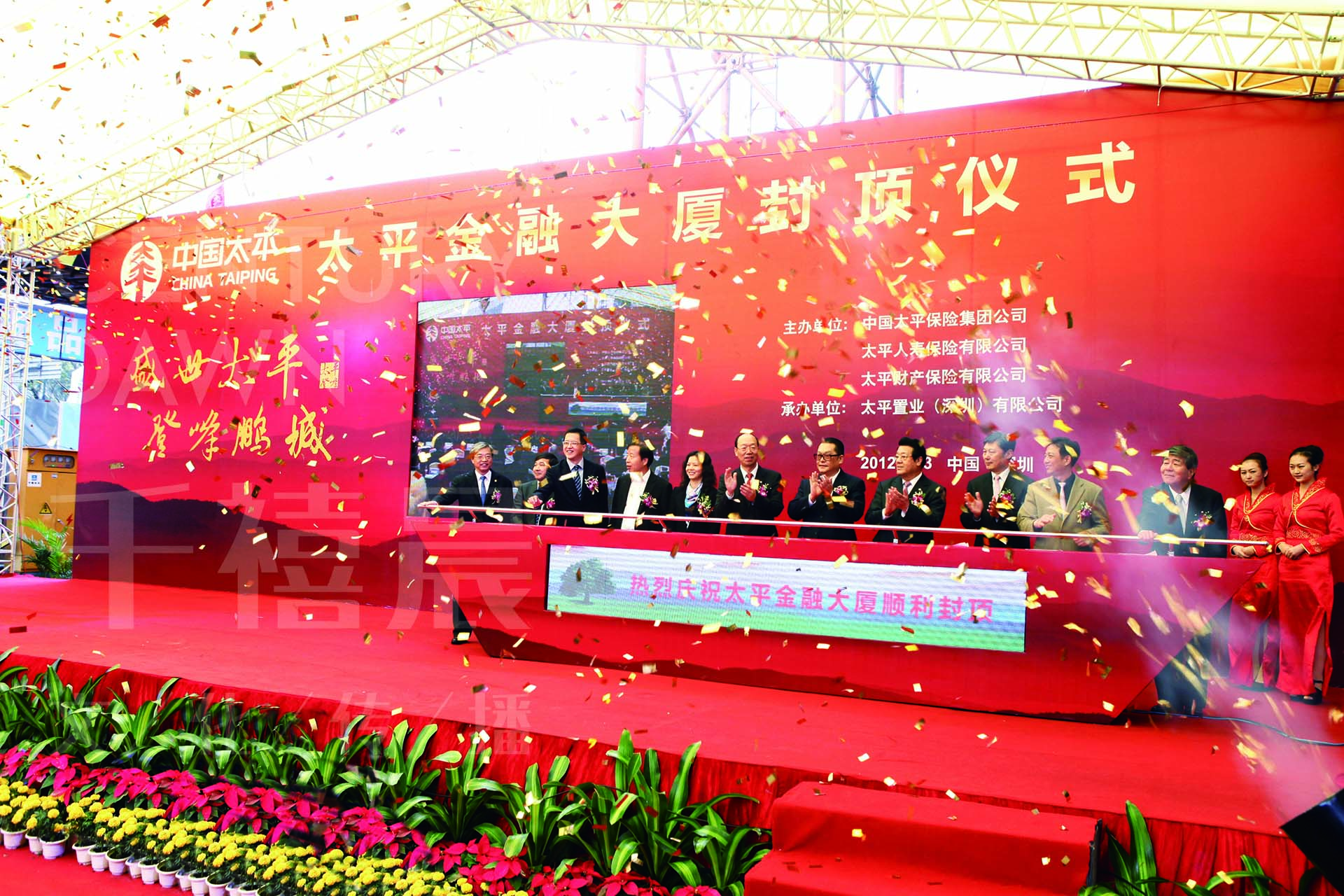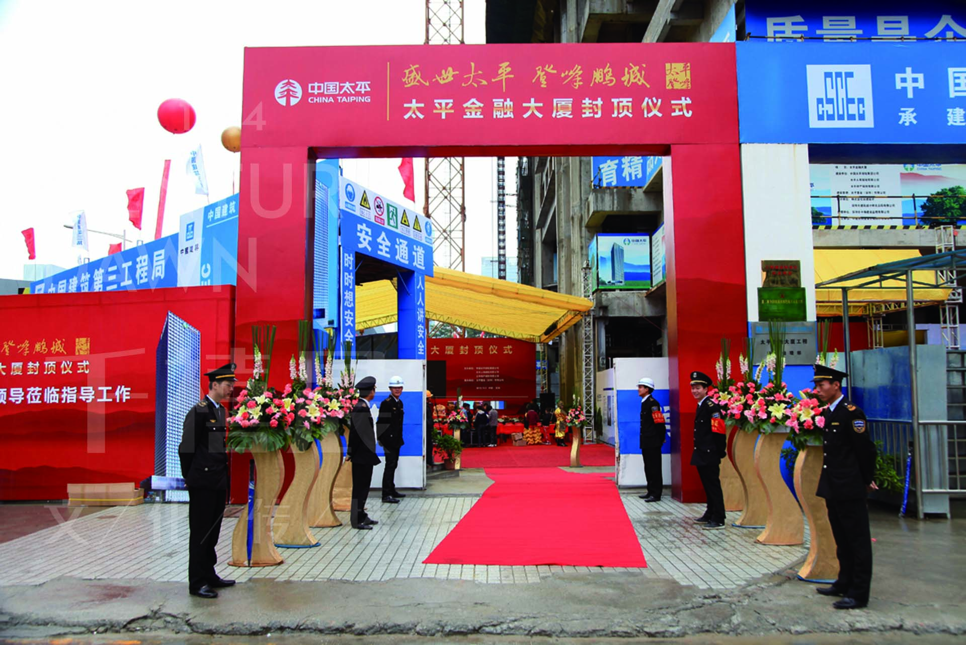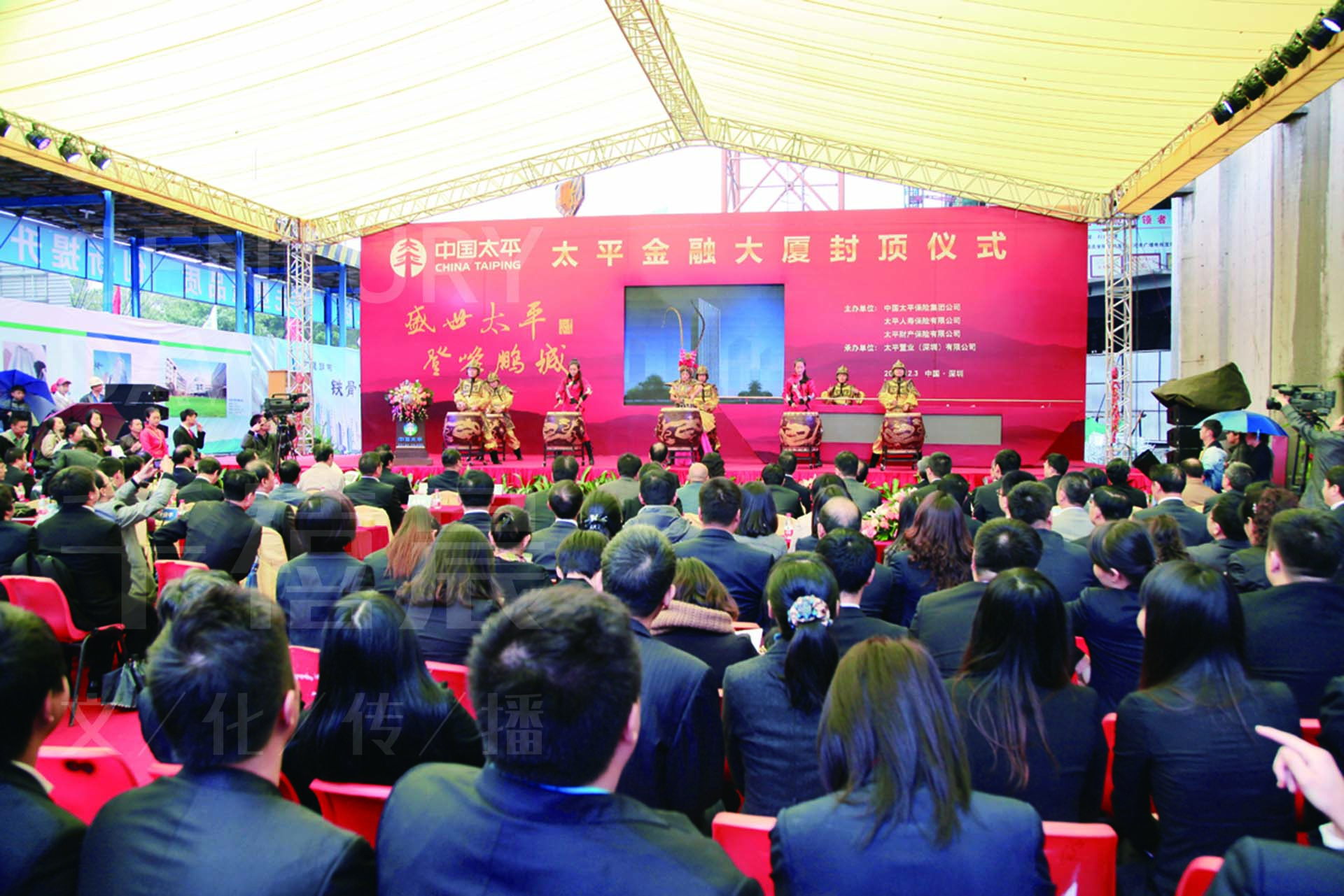 太平金融大廈“盛世太平?登封鵬城”封頂儀式在深圳市福田區(qū)項目現(xiàn)場隆重舉行。深圳市人民政府及相關(guān)部門領(lǐng)導(dǎo),深圳保監(jiān)局領(lǐng)導(dǎo),集團總經(jīng)理宋曙光、副總經(jīng)理謝一群、總經(jīng)理助理鄭常勇,集團各部門、子公司負責(zé)人以及參與太平金融大廈施工建設(shè)的各方代表,共同出席大廈主體結(jié)構(gòu)封頂儀式。